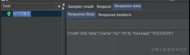 同样使用JMeter调用接口,传入参数:{"id":-5,"name":"admin"},响应结果表明:@Around截取到了接口的入参,并使接口返回了切面类中的结果。