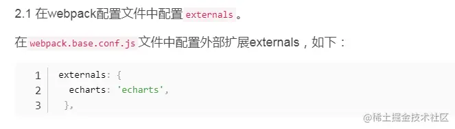 如果需要引用一个库,但是又不想让webpack打包(减少打包的时间),并且又不影响我们在程序中以CMD、AMD或者window/global全局等方式进行使用(一般都以import方式引用使用),那就可以通过配置externals。