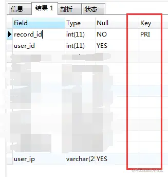 然后查看数据库结构,可以看到除了主键id之外没有添加任何索引。