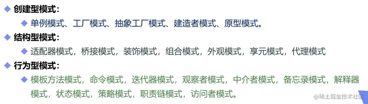 - 软件设计模式的概念 软件设计模式(Software Design Pattern),又称设计模式,是一套被反复使用、多数人知晓的、经过分类编目的、代码设计经验的总结。它描述了在软件设计过程中的一些不断重复发生的问题,以及该问题的解决方案。也就是说,它是解决特定问题的一系列套路,是前辈们的代码设计经验的总结,具有一定的普遍性,可以反复使用。其目的是为了提高代码的可重用性、代码的可读性和代码的可靠性。
