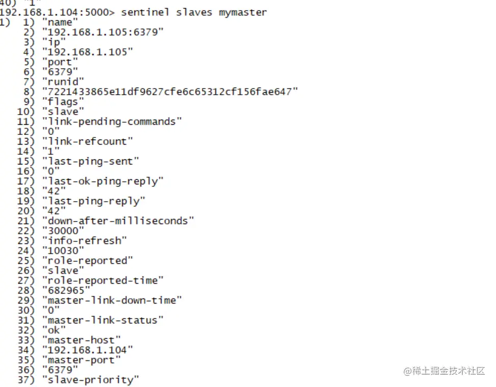 sentinel monitor mymaster 127.0.0.1 6379 2:用来指定对一个master的监控