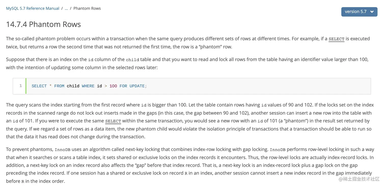 [1]mysql 5.7文档: https://dev.mysql.com/doc/refman/5.7/en/innodb-multi-versioning.html