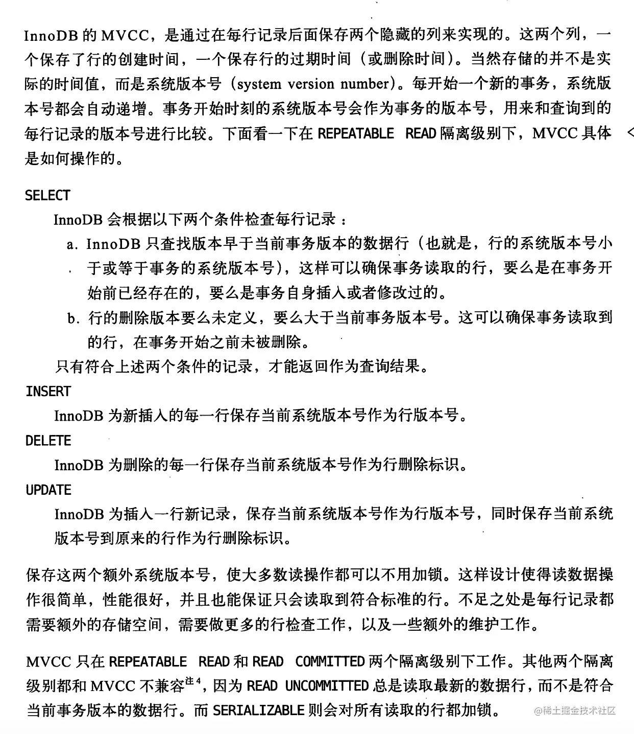这本书写的很好,翻译的也不错,我对于 MySQL 最初的系统性认识也是因为读了这本书,然而在对于 MVCC 是如何实现的讲述上,个人认为是有些问题的。