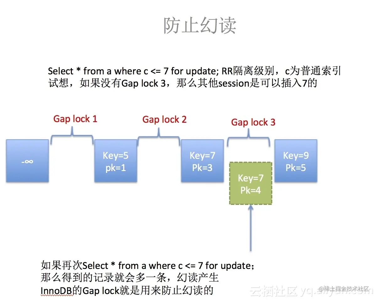 为了解决当前读中的幻读问题,MySQL事务使用了 next-key lock 。