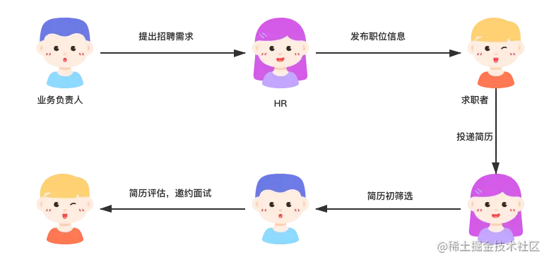 - HR在接到需求后,会在求职市场上发布招聘信息;