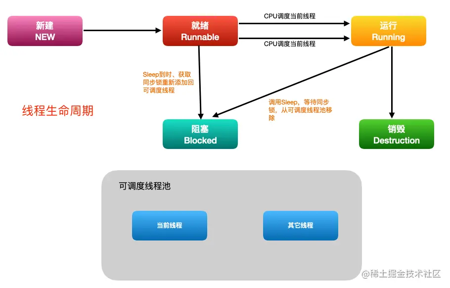 CPU快速的在多个线程之间切换。CPU调度线程的时间足够快,就造成了多线程'同时'执行的效果 - 3.线程非常多: