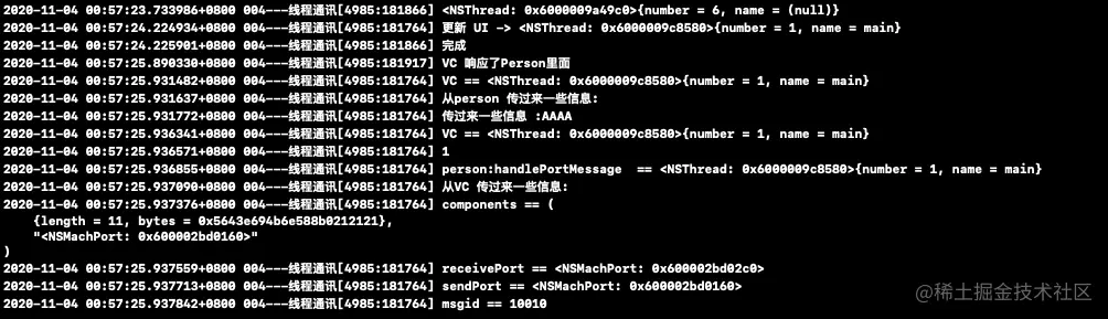 NSLog(@"person:handlePortMessage == %@",[NSThread currentThread]);