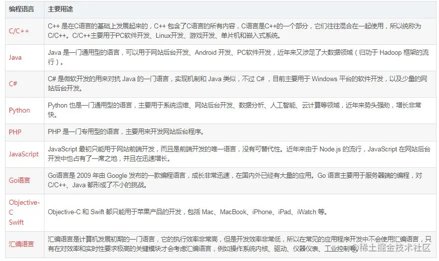 编程语言有很多种,常用的有C语言、C++、Java、C#、Python、PHP、JavaScript、Go语言、Objective-C、Swift、汇编语言等,每种语言都有自己擅长的方面,**例如: