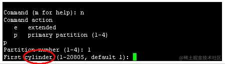 分区的过程就是你输入起始柱面号和截至柱面号的过程。不过在实际中,分区并不能从0号柱面开始的,因为磁盘的第一个磁道对应的柱面会被用来安装引导加载程序以及磁盘分区表。