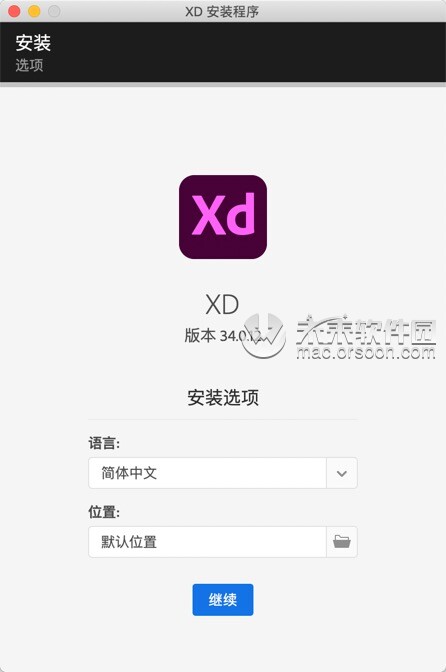 点击【继续】,进行安装adobe xd mac版软件,如图: