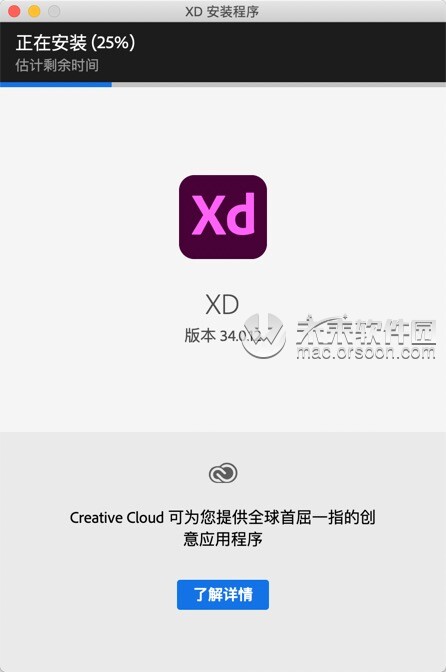 adobe xd mac软件正在安装中,请稍等 ,如图: