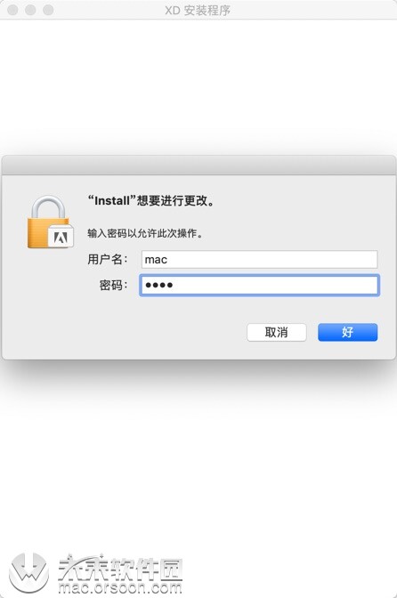 输入Mac密码然后点击【好】,如图: