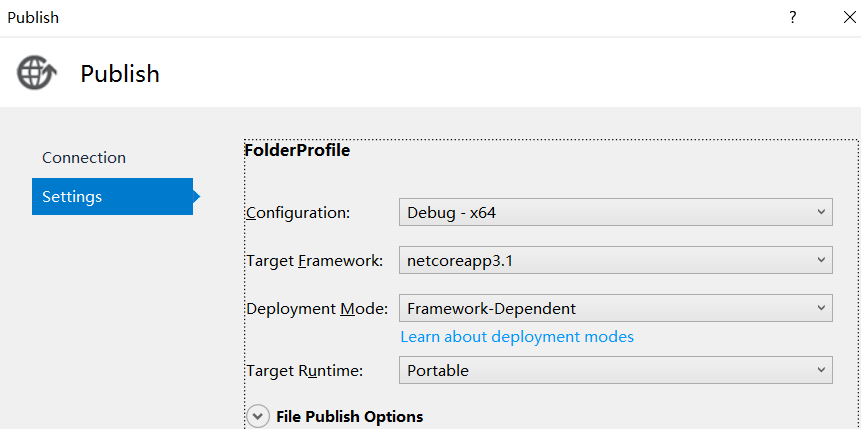 发布配置上,第一个要确保是 debug 版本,第二个要确保是 可移植模式 (Portable), 如下图: