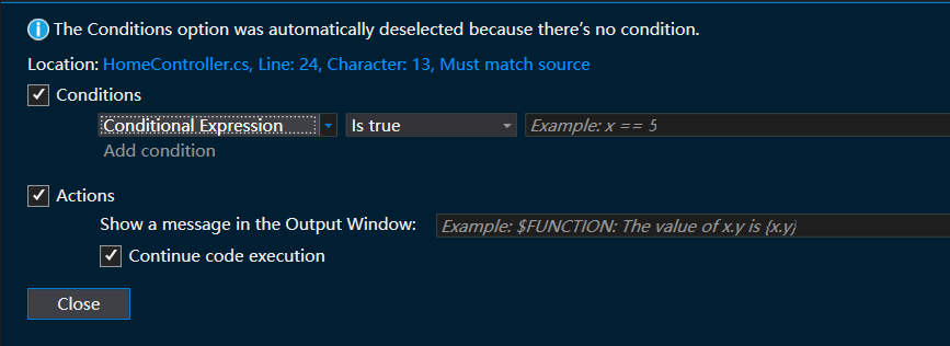 调试程序除了使用 F9 进行调试,相信也有不少朋友知道断点是可以编辑的,比如说:设置表达式断点,过滤器断点,命中次数断点,动作断点,下如图: