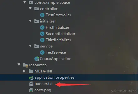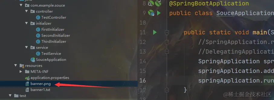 第二种:在reources目录下创建一个banner.png的图片(名字必须是banner.png或者jpg或者gif),然后将之前创建的banner.txt改成banner1.txt,主要是为了不让之前的影响现在的结果