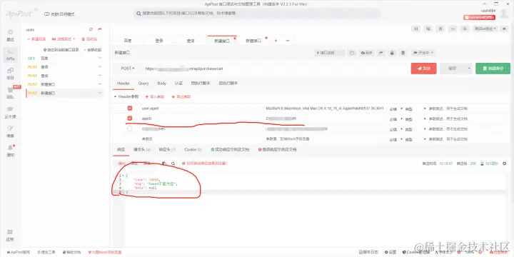 然后这款小程序appid请求是放在header里面的,填写之后就不为空了。