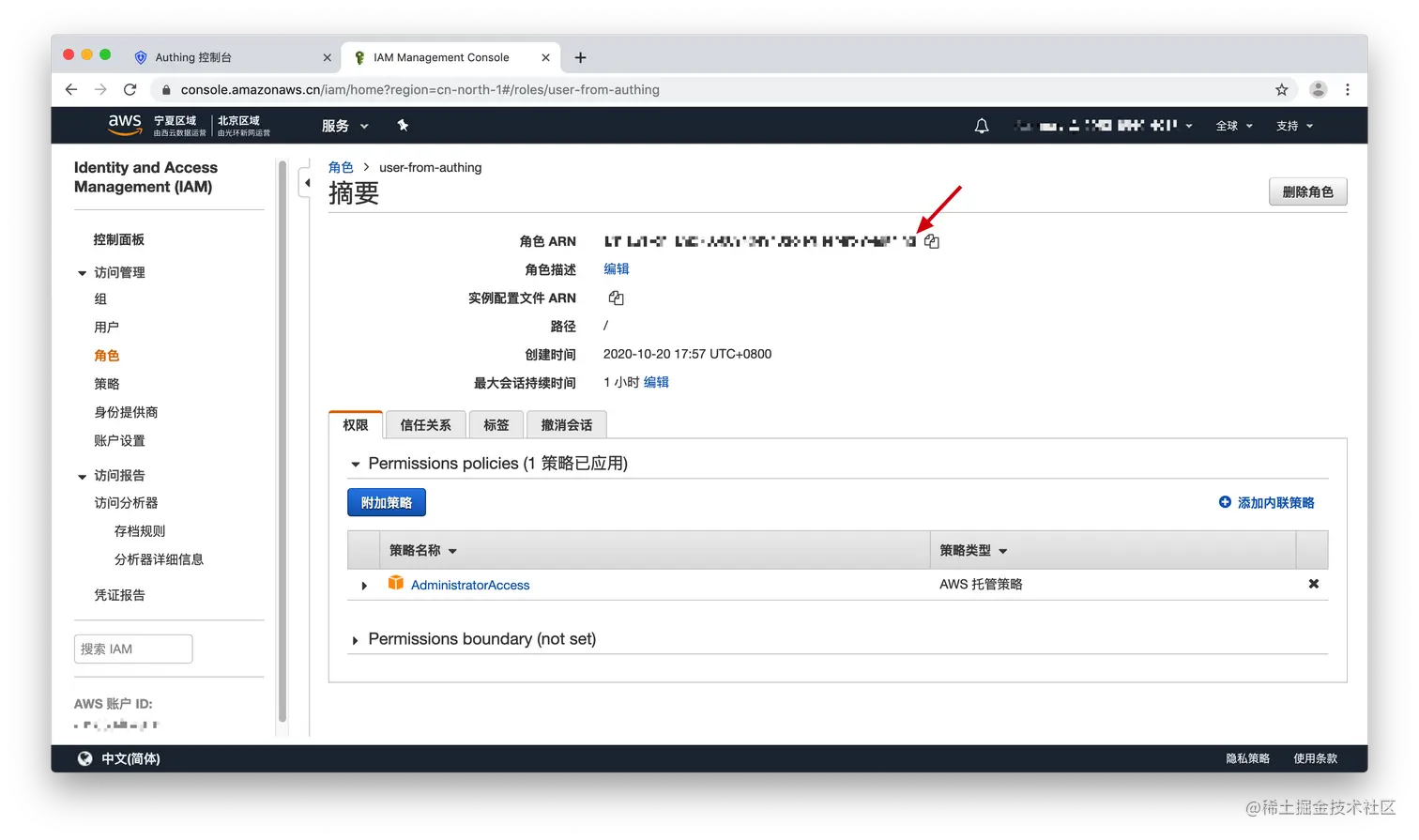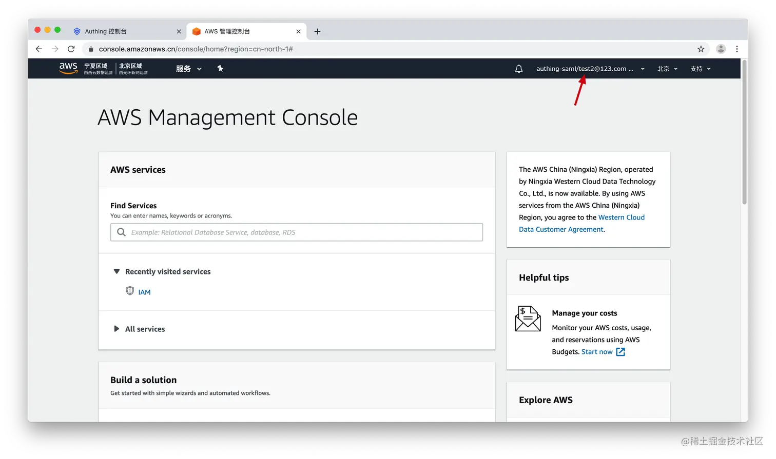 AWS 中国区和国际区的配置稍有不同,本文讲述使用 Authing SAML2 IdP 登录 AWS 中国区控制台的相关配置。