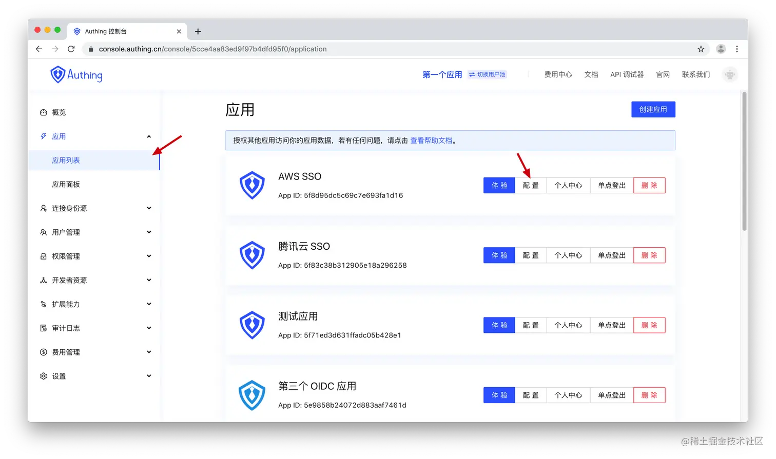 进入控制台 > 应用 > 应用列表,找到你的应用,点击「配置」。