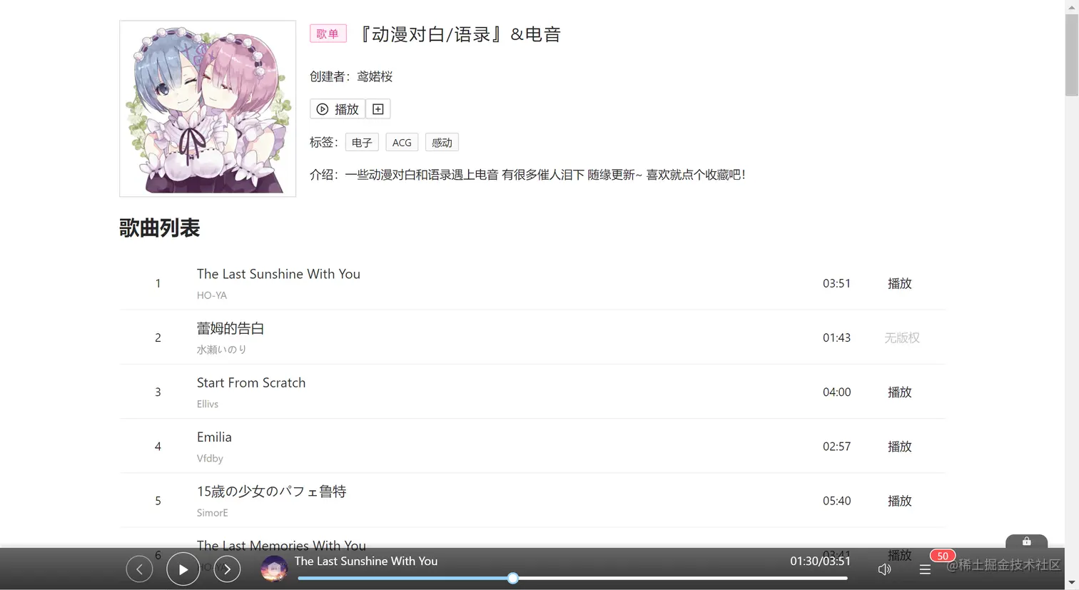 歌单详情页如果歌曲数量较多可能要加载较长时间,不过我加了本地缓存,第二次进来就好很多了