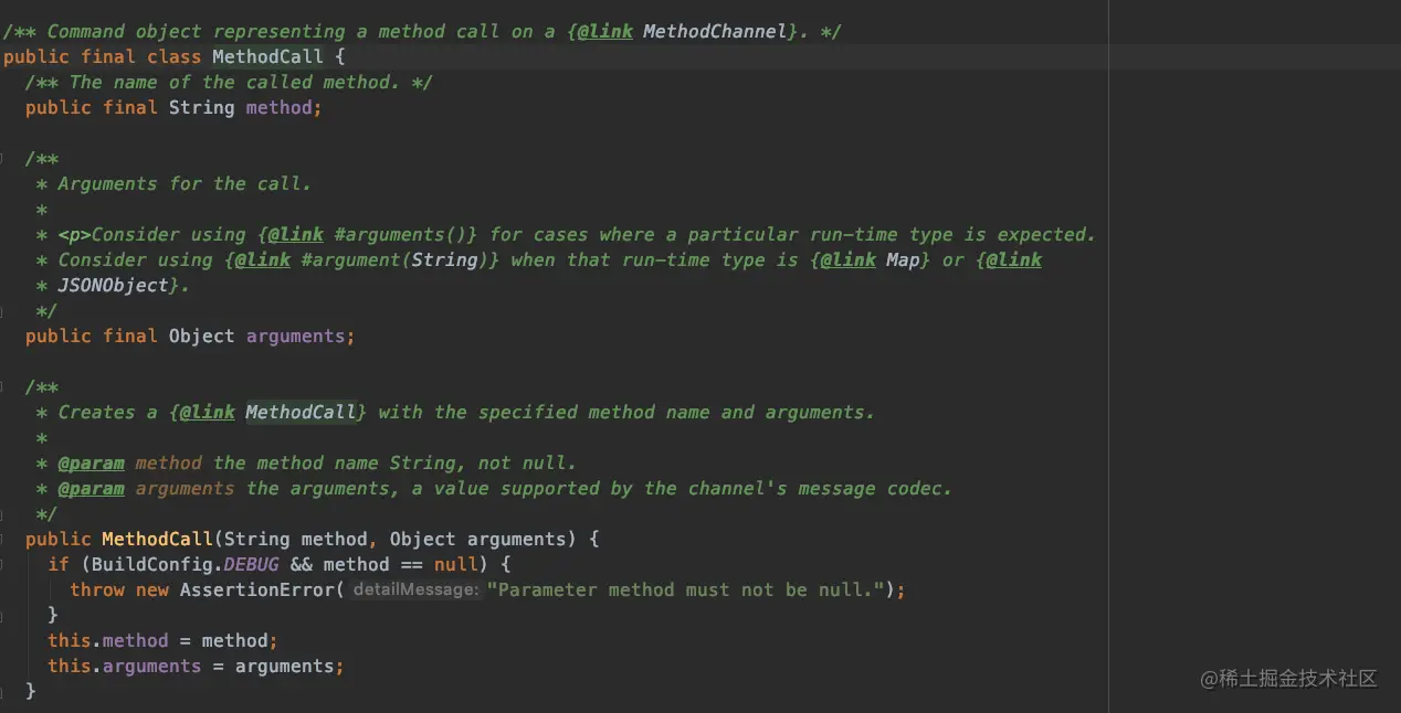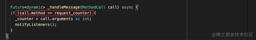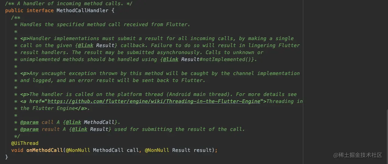 MethodCallHandler里面的抽象方法onMethodCall来区分,onMethodCall方法里面有两个参数 MethodCall包含传过来参数的一些信息 比如方法名,参数等信息,