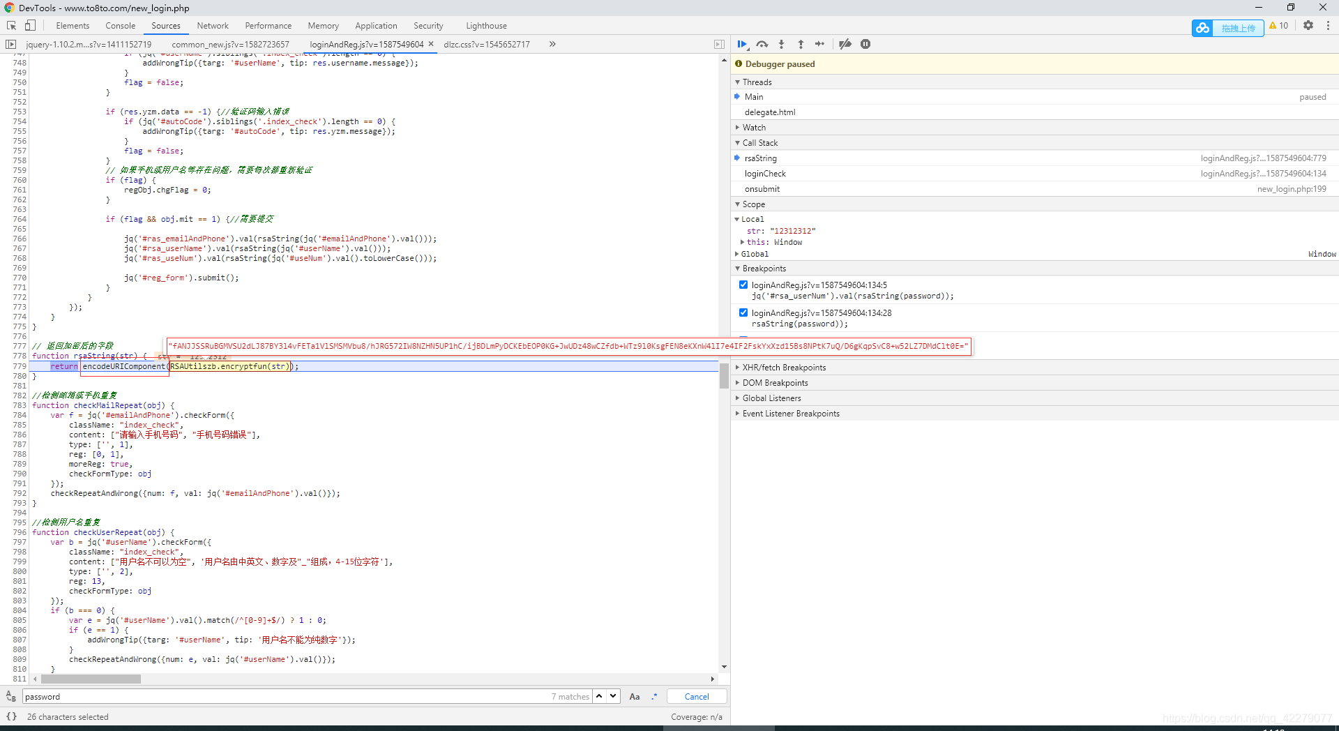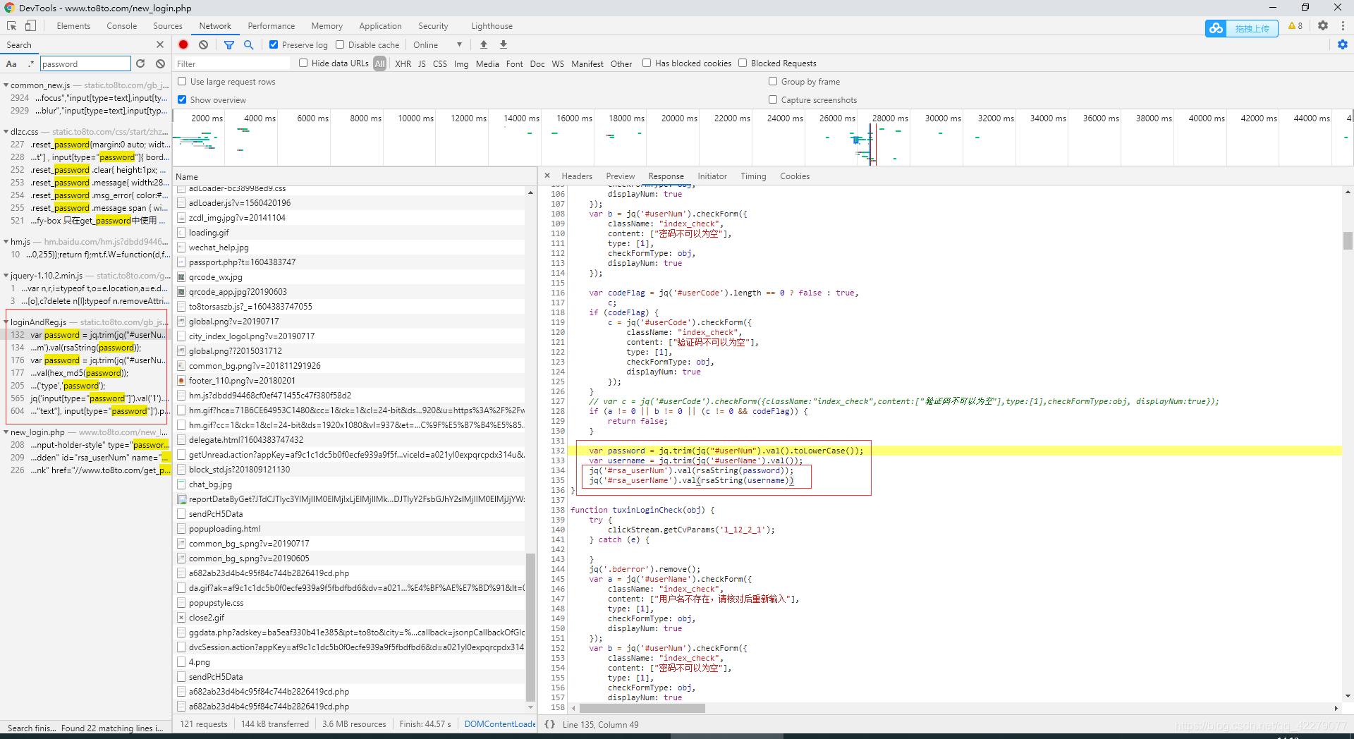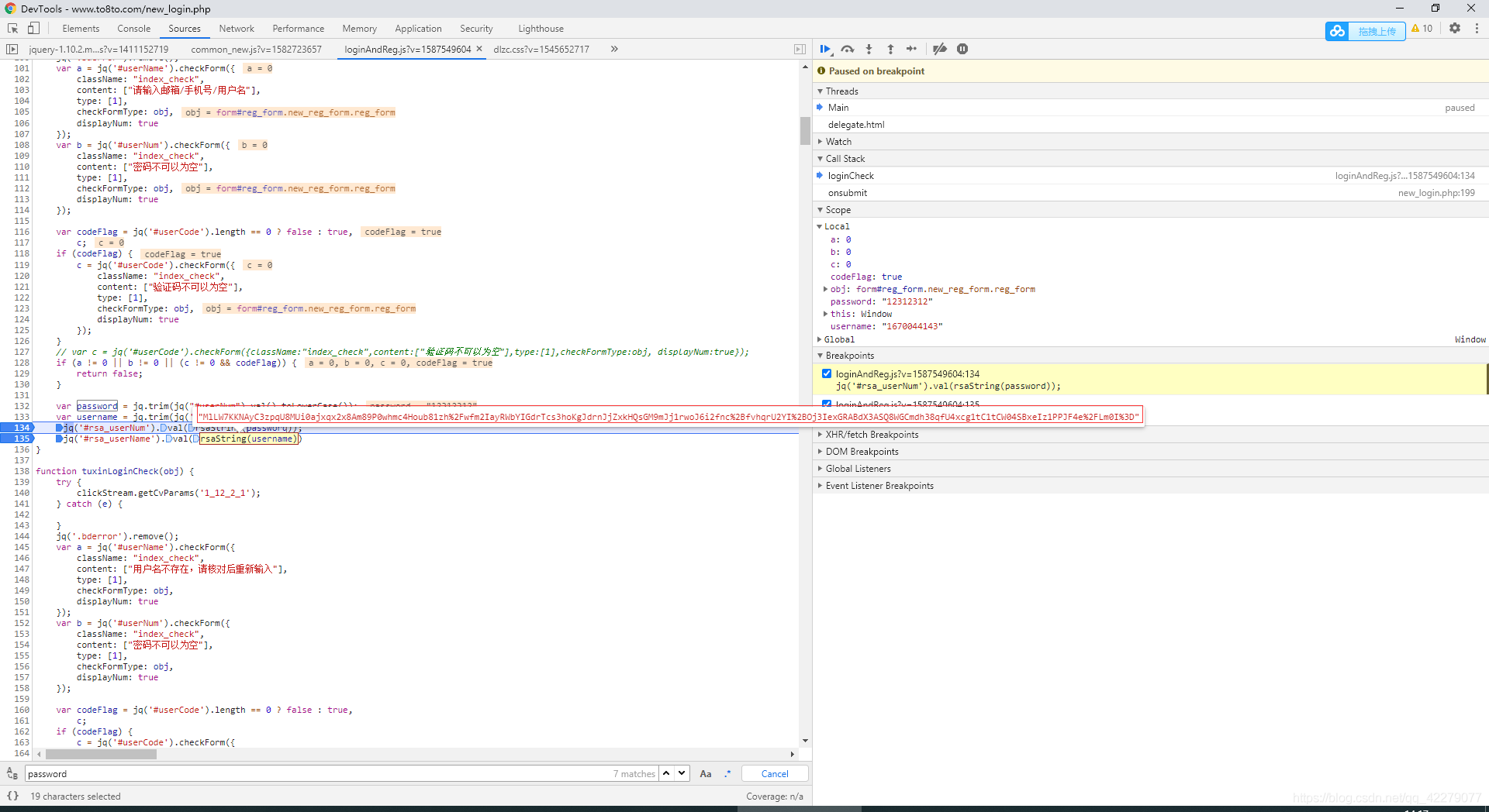 第一个js文件名以login命名,明显更符合登陆时用的js文件,第二个是一段js代码:jq('#rsa_userNum').val(rsaString(password)); jq('#rsa_userName').val(rsaString(username))很明显是Jquery的语法,以及使用RSA算法进行加密的。