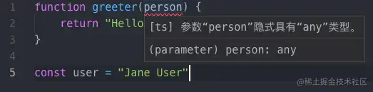 我们接着上面的index.ts,我们改写下,改成来打印greeter(user);