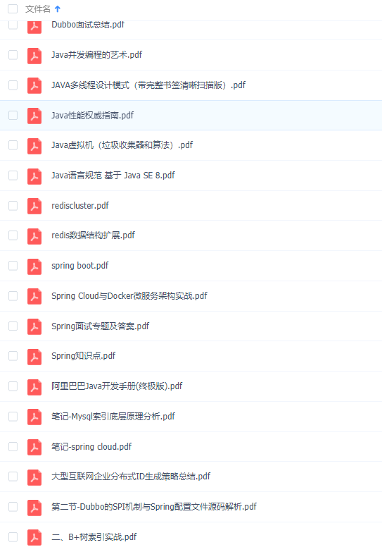 平常用的的技术点也不止Spring,也不好全部写出来了,所以全部都总结成了PDF,都是免费给大家的,帮大家一起成为大佬。