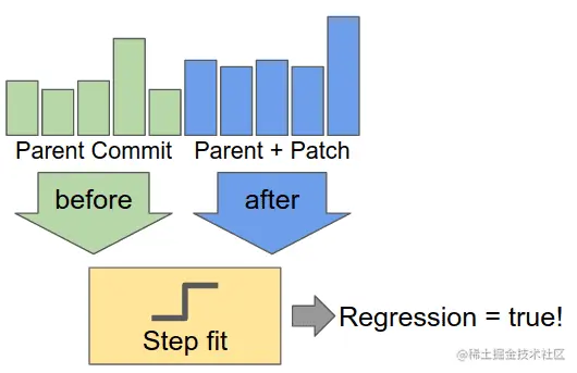 这里操作的原理是,通过检测更改前后的误差,并对该误差的平均值的差进行加权,基准的方差越小,我们就越有信心检测出细微的测试回归。这使得我们可以在一个方差更高的大型 (对于移动平台来说) 数据库基准测试的系统中运行纳秒级精度的微型基准测试。