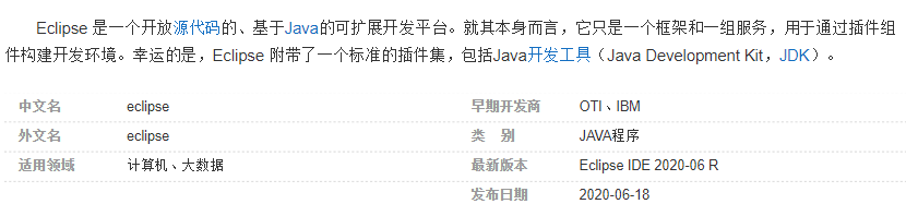 Eclipse最初是由IBM公司开发的替代商业软件Visual Age for Java的下一代IDE开发环境,2001年11月贡献给开源社区,它由非营利软件供应商联盟Eclipse基金会(Eclipse Foundation)管理。