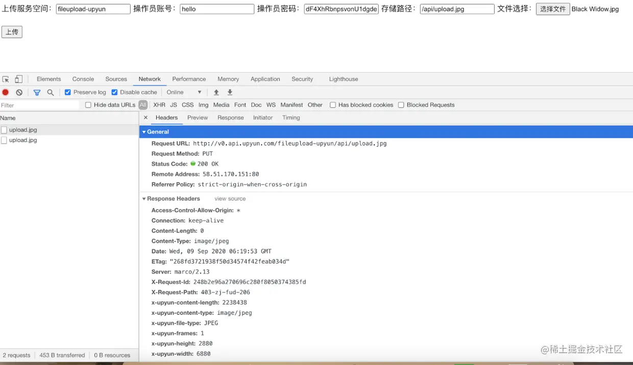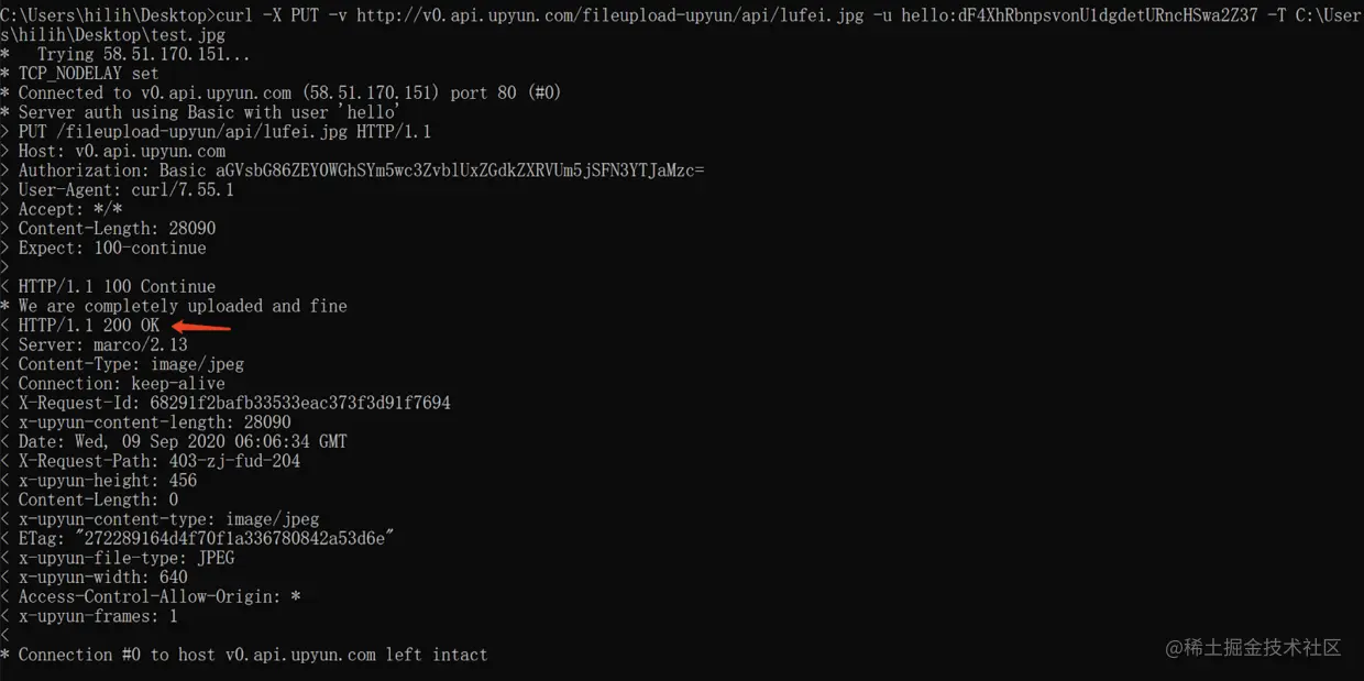 这样呢,我们就成功的调用了云存储的上传 API 接口,通过接口上传了一张本地的图片到存储空间中。