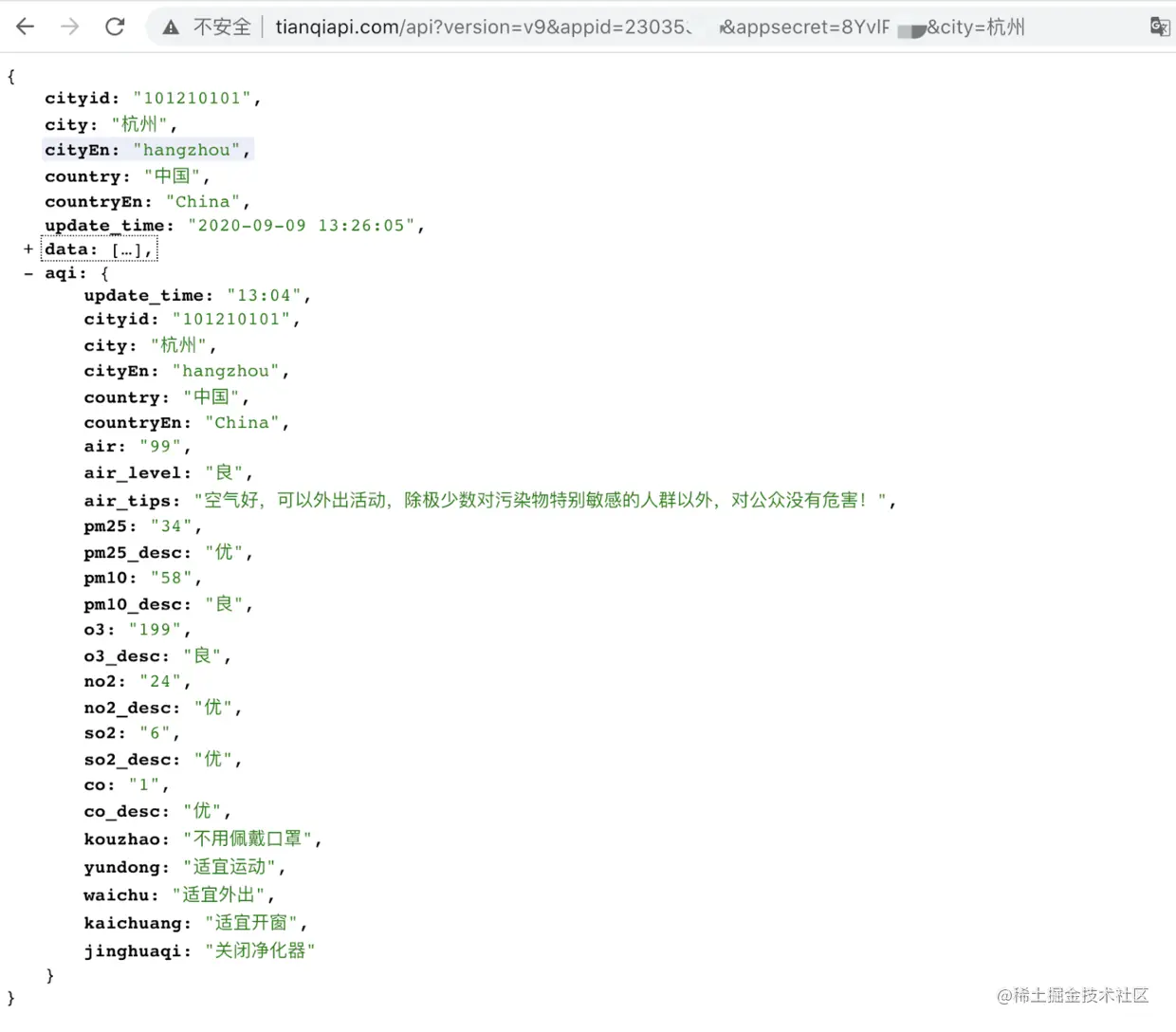 现在市面上开放的 API 接口,一般都是通过 HTTP 请求调用的。例如,一些第三方提供的查询天气的功能,我们就可以根据第三方提供的 API 地址以及相关的说明文档,携带上请求参数,在浏览器中直接访问使用。