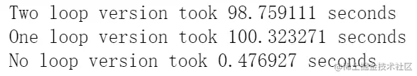 print('No loop version took %f seconds' % no_loop_time)