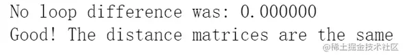 # check that the distance matrix agrees with the one we computed before: