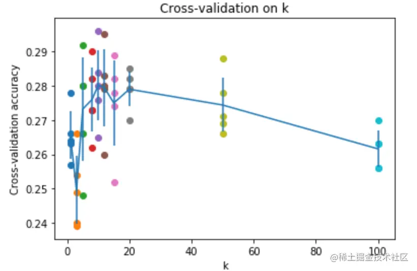 # values of k in the k_to_accuracies dictionary. #
