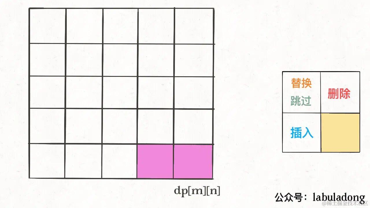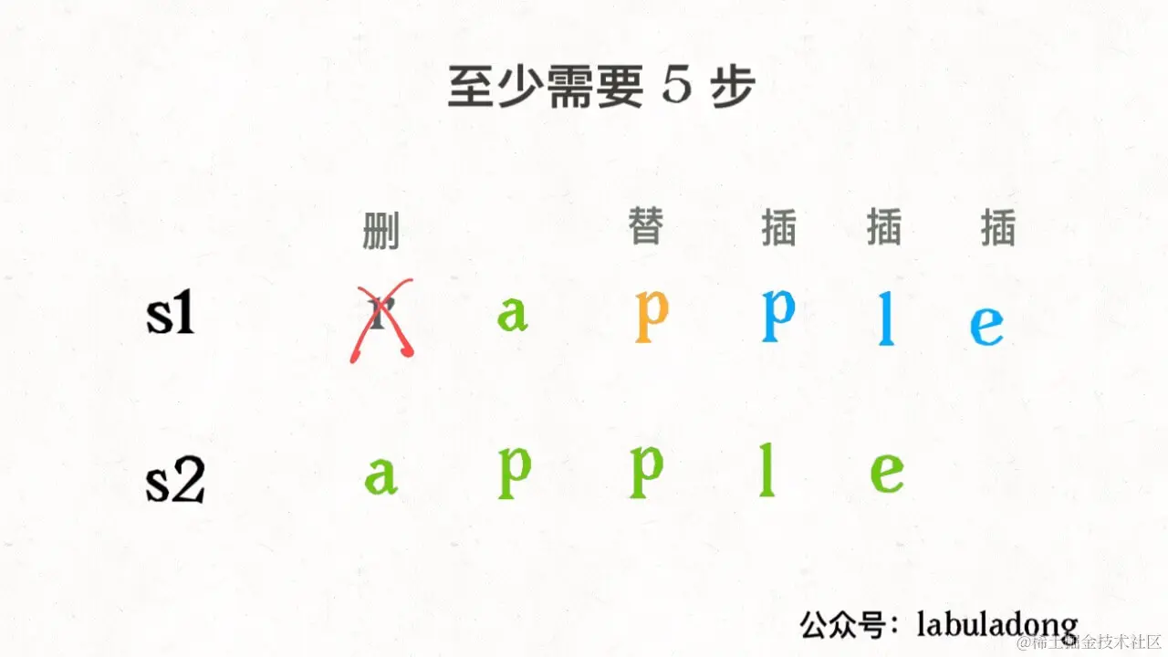 请记住这个 GIF 过程,这样就能算出编辑距离。关键在于如何做出正确的操作,稍后会讲。