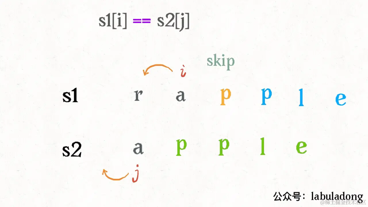 # 那么 s2[j] 就被匹配了,前移 j,继续跟 i 对比