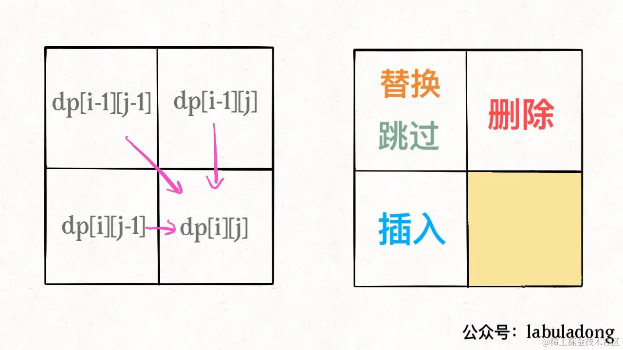 你可能还会问,这里只求出了最小的编辑距离,那具体的操作是什么?你之前举的修改公众号文章的例子,只有一个最小编辑距离肯定不够,还得知道具体怎么修改才行。