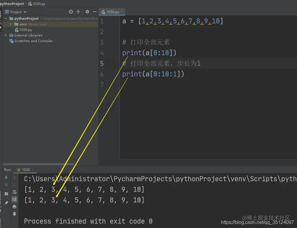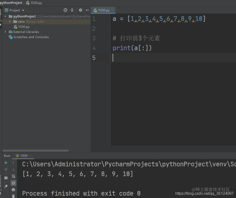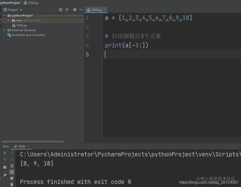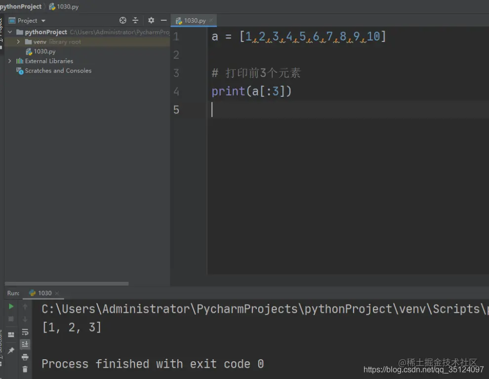 这种快捷方式同样适合于正数索引,如果想使用置空的索引进行输出一样是可以的。比如我们要打印前3个元素,操作如下图所示: