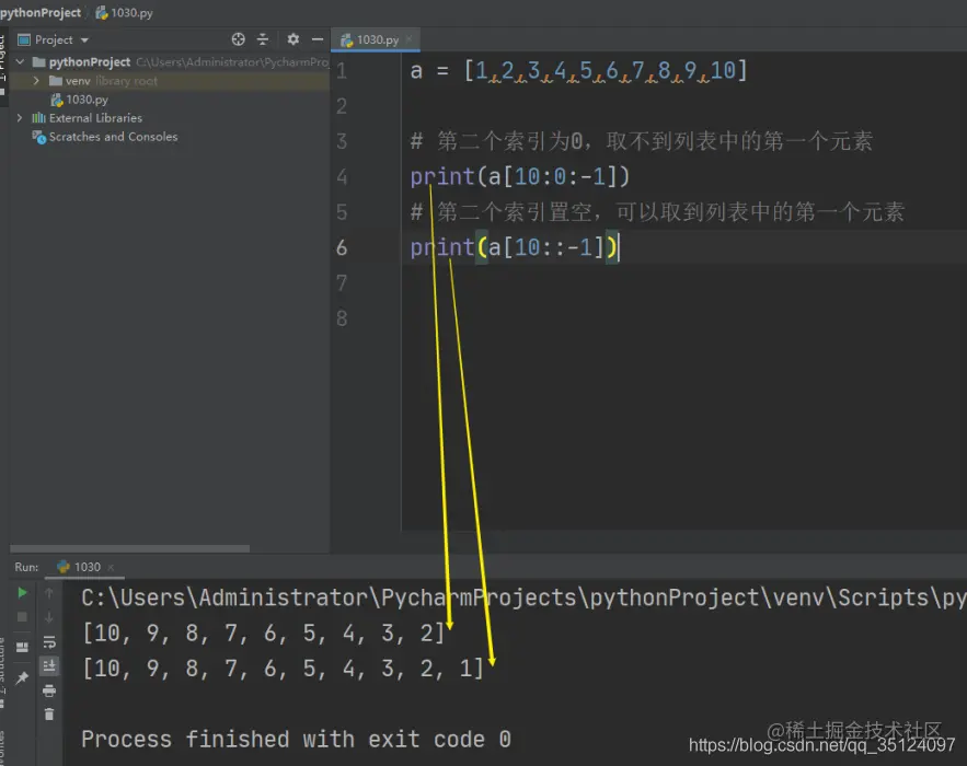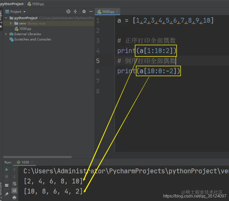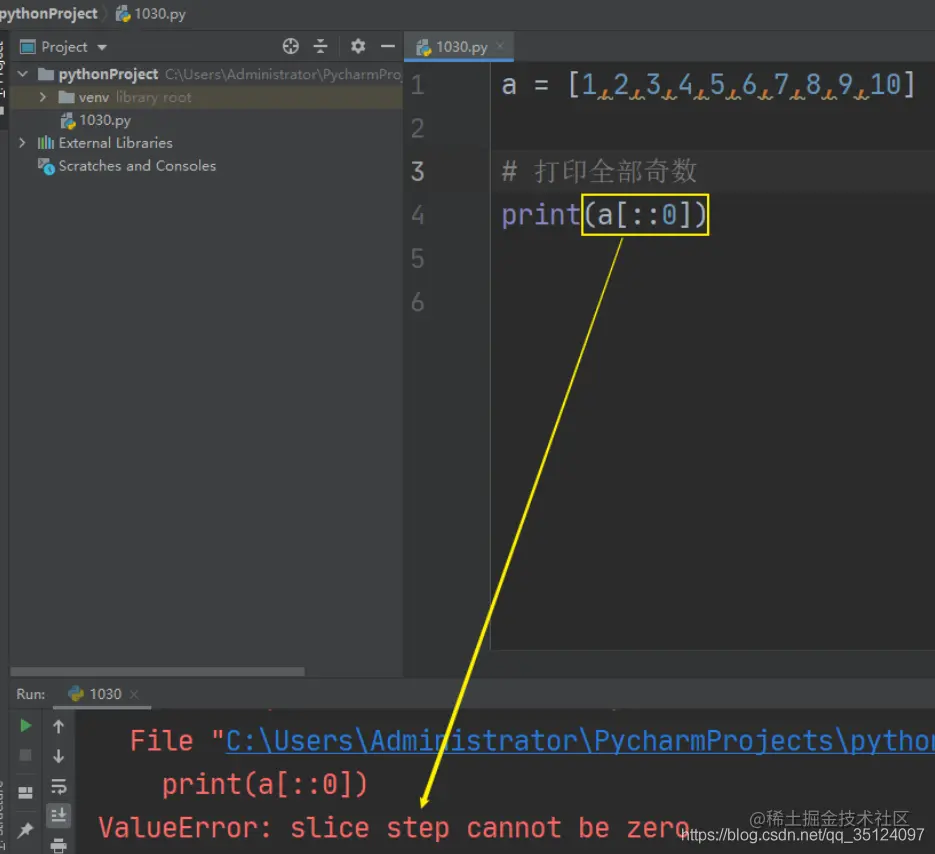 上述中的错误类型为值错误:切片步长不能为0,但是切片步长是支持负数的,如果取出a列表中的偶数,正向排列可以获得一种,负数索引的倒序排列也可以获得,操作如下图所示: