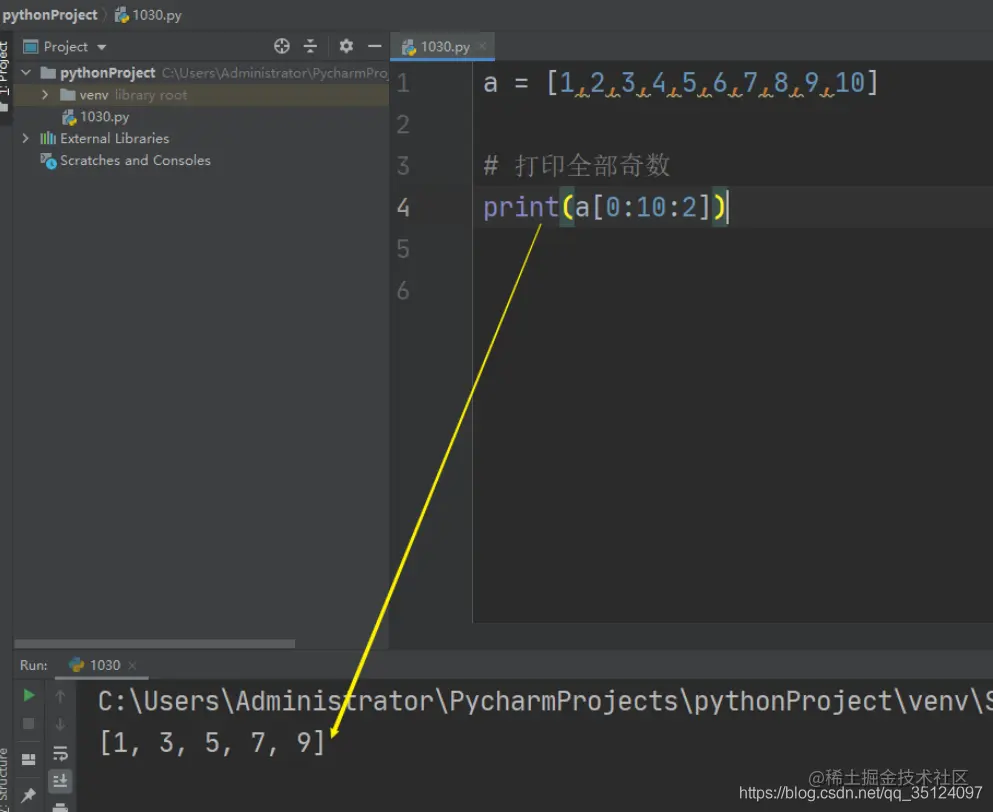 如果我们需要取a列表中的奇数,那我们可以设置索引值的同时,设置步长值为2。操作如下图所示: