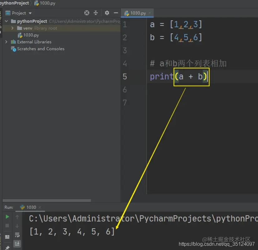 使用算术运算符的加号可以实现序列相加的操作,相加的实质就是序列的连接。定义一个列表a = [1,2,3] b = [4,5,6],然后使用加号进行连接,输出结果就是一个新的列表为[1,2,3,4,5,6],操作结果如下图所示:
