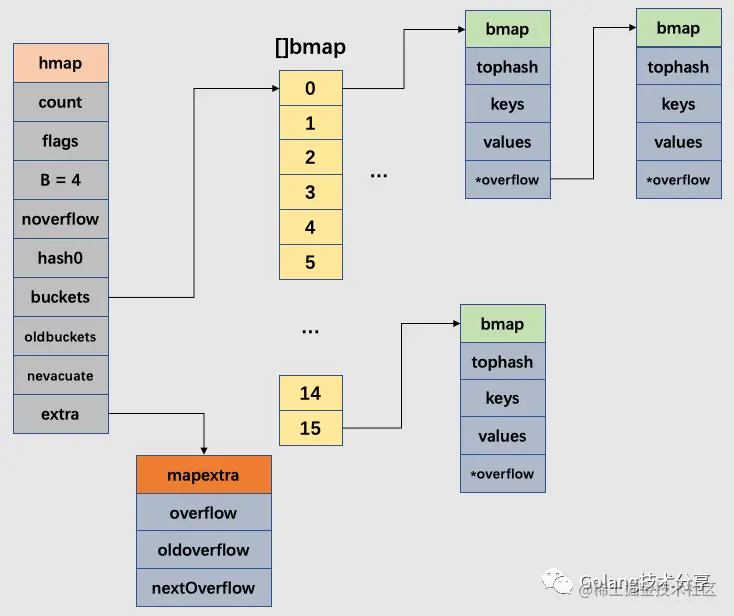 // 都放在 hmap.extra.overflow 和 hmap.extra.oldoverflow 中了