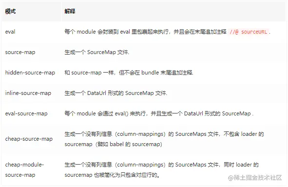 参数:[inline-|hidden-|eval-][nosources-][cheap-[module-]]source-map
