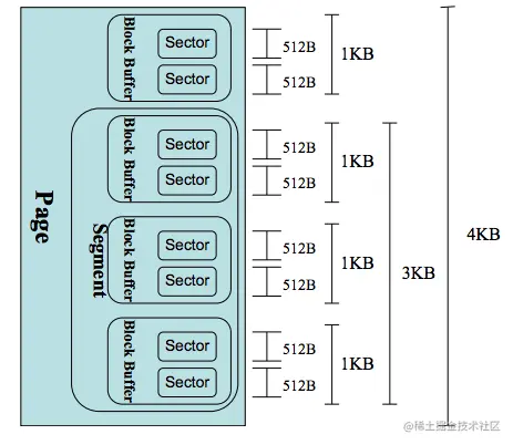可以看到,虽然我们从用户角度确实是只读了1个字节(开篇的代码中我们只给这次磁盘IO留了一个字节的缓存区)。但是在整个内核工作流中,最小的工作单位是磁盘的扇区,为512字节,比1个字节要大的多。另外block、page cache等高层组件工作单位更大,所以实际一次磁盘读取是很多字节一起进行的。假设段就是一个内存页的话,一次磁盘IO就是4KB(8个512字节的扇区)一起进行读取。