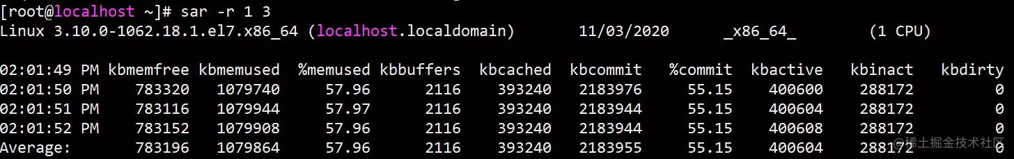sar -r 1 3