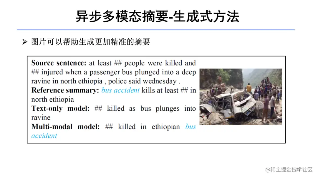 多模态已成为新闻报道和信息交流的主要呈现形式,多模态自动摘要技术,旨在利用计算机自动实现从多个模态的信息中压缩生成摘要的过程,可以广泛应用于新闻推送和电商推荐等多个领域。