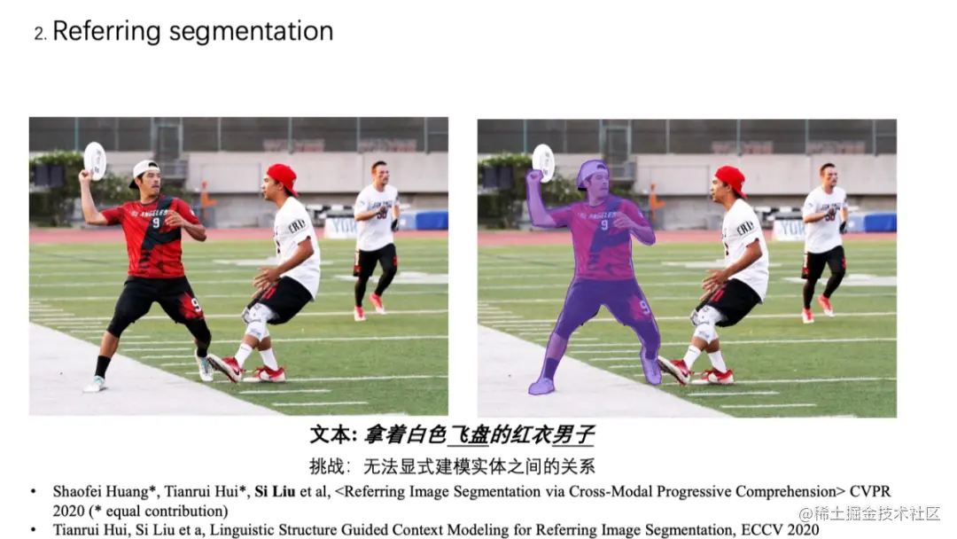 多模态智能分析是近期的研究热点。来自北航的刘偲教授围绕视觉和语言的交互介绍两方面的内容进行了分享。她首先介绍了视觉关系检测的研究,包括人-物关系检测,人-物关系分割,视频关系检测等方面的内容。其次,她指出视觉指代表达和指代分割,对于智能机器人和交互式图像编辑等实际应用有重要意义。传统的视觉指代表达方法采用两阶段式架构,模型复杂且速度受限,而传统的指代分割方法聚焦于多模态特征融合,缺乏利用语言信息进行上下文建模和推理的能力。在本次讨论中,她给出了针对性的解决方法。