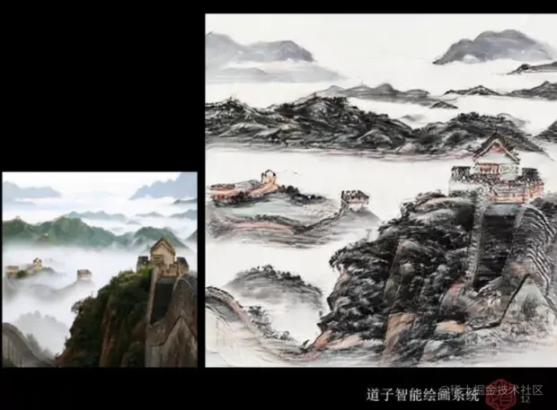 清华大学未来实验室博士后高峰分享了AI技术在艺术与设计领域的创新性应用。其团队开发的道子智能绘画系统,利用计算机将自然图像以风格迁移的方式转变成艺术图像,根据所得艺术图像进行水墨画绘作,实现技术与艺术间的跨界融合。高博士也介绍了道子在服装设计、工业设计、装置艺术等领域的探索成果。
