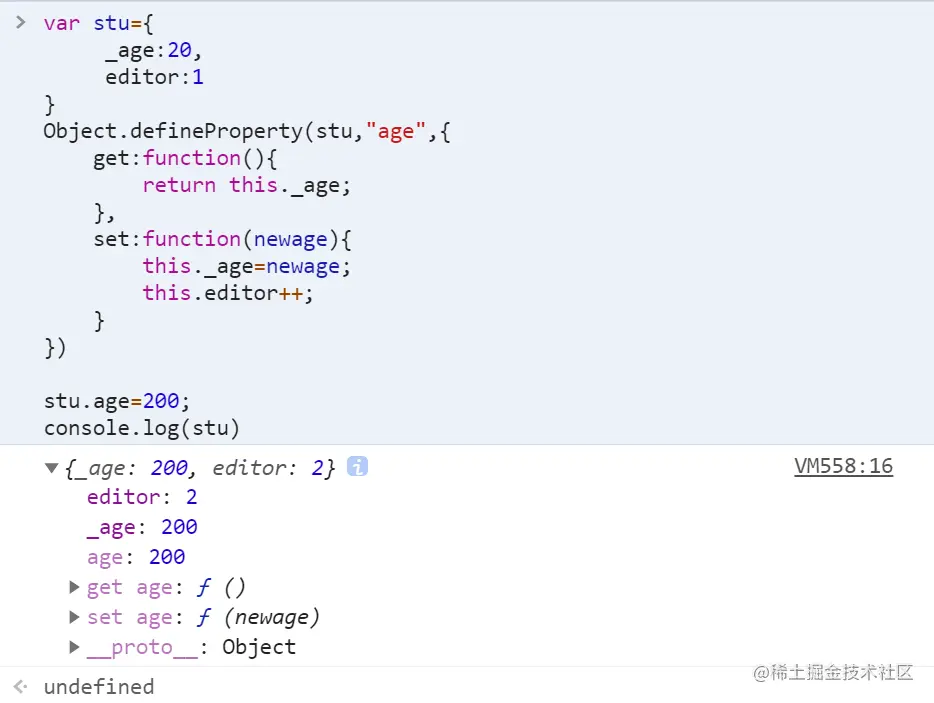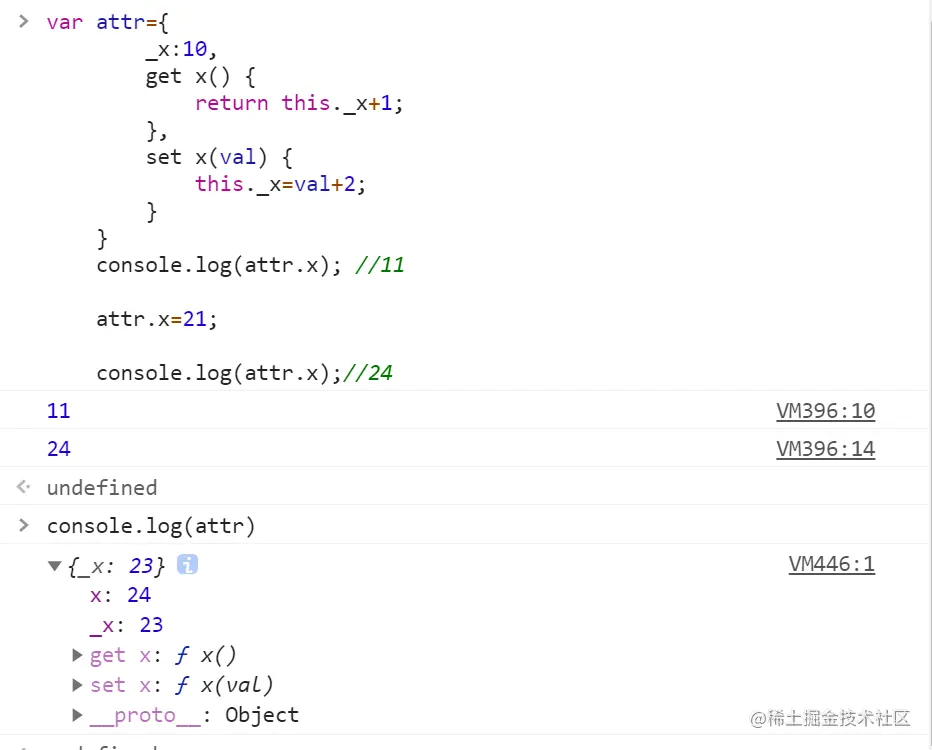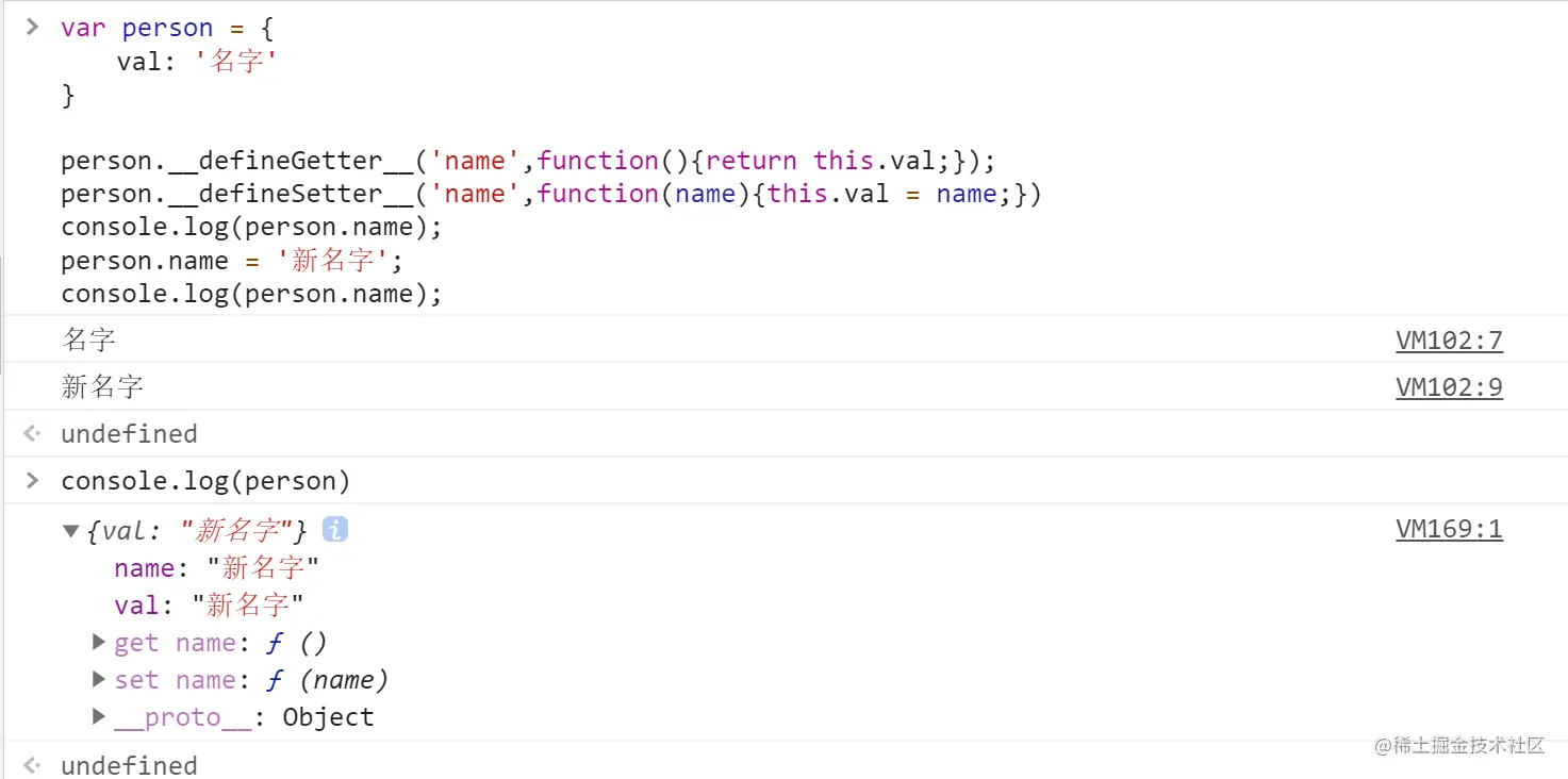 __defineGetter__和__defineSetter__用来给对象已经定义之后,给对象的属性绑定新的get和set方法