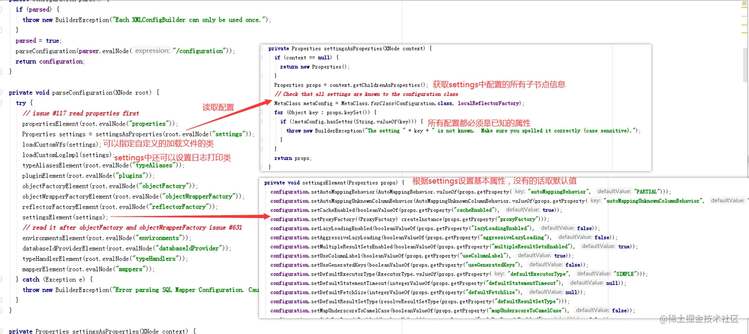 可以看到parseConfiguration方法中几乎每一行代码都是调用一个方法,那么接下来我们就来一行一行的分析parseConfiguration代码。